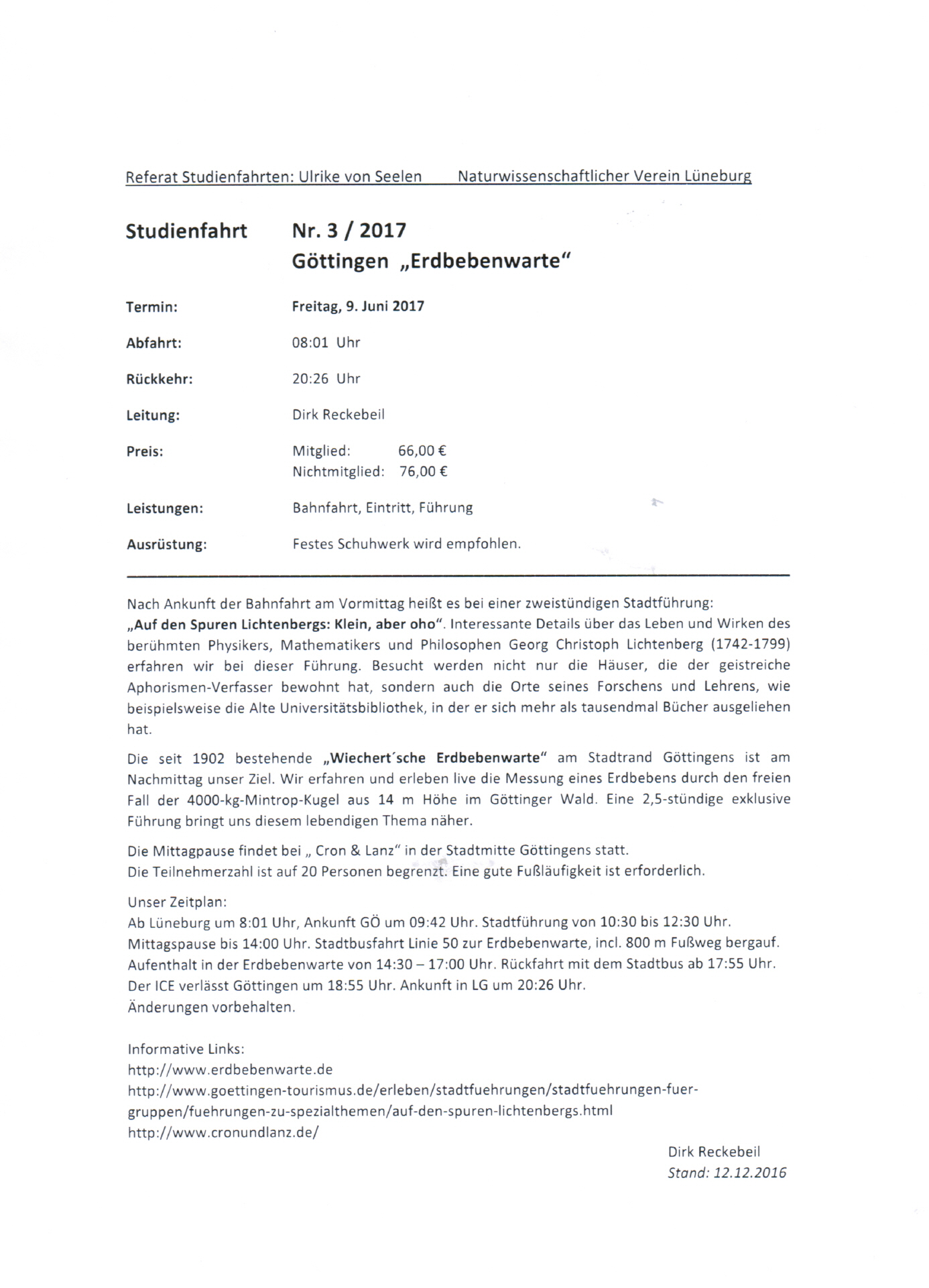 3. Studienfahrt: Freitag, 09. Juni 2017