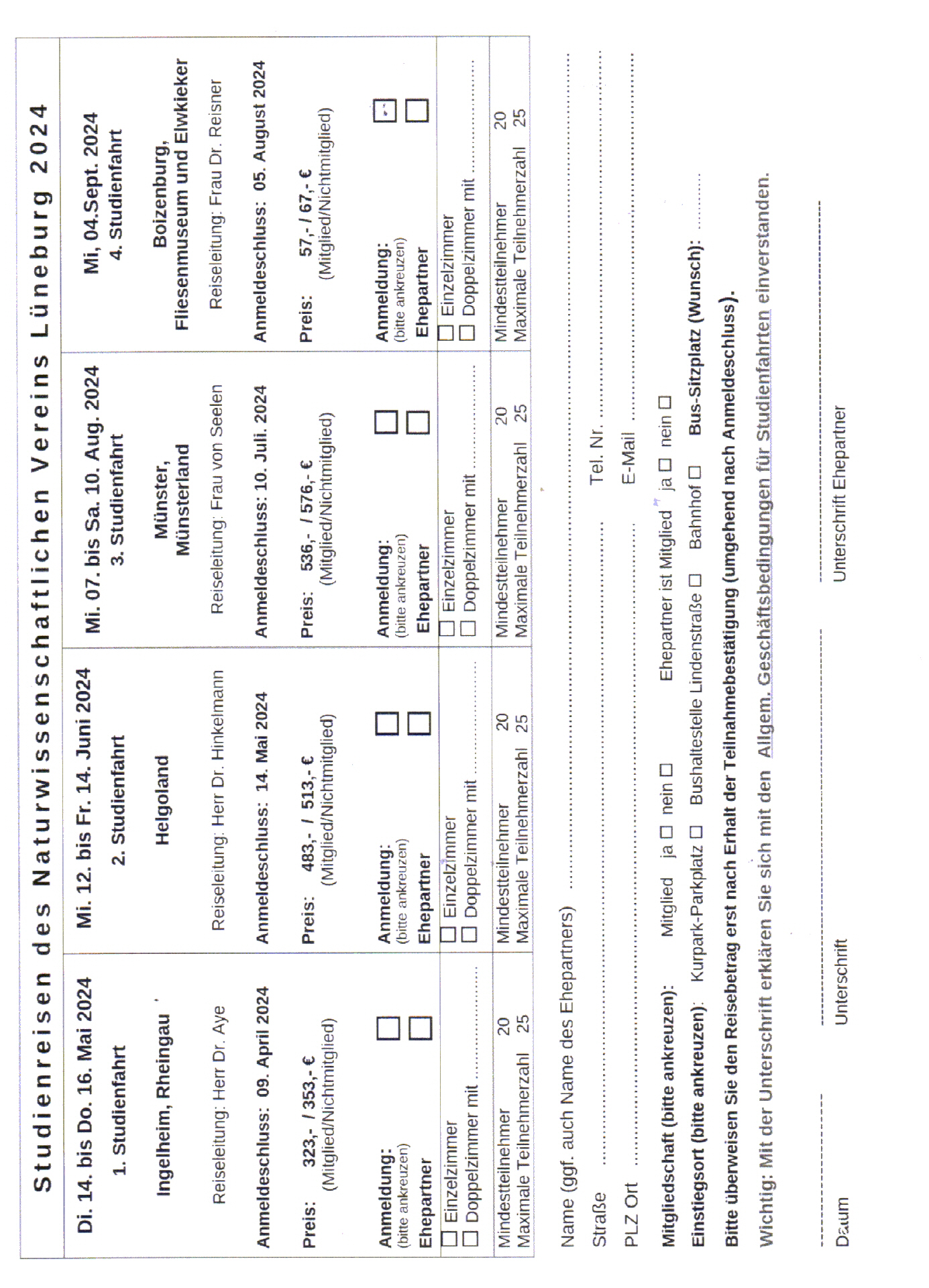 Anmeldeformular Studienfahrten